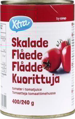Flådde Tomater i Tomatjui 400grm Xtra fra Xtra Vekten er 400 g. Produktet leveres av COOP TRADING AS. Produktet ble første gang registrert 11.6.2023 og sist oppdatert 6.9.2023.