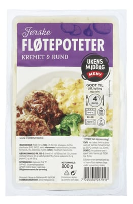 Fløtepoteter 800g Meny fra Meny er et produkt innen Middag, Potetretter, Gratinerte poteter. Produktet er tilgjengelig hos Meny til en pris av 69.90 kr. Vekten er 800 g. Produktet inneholder følgende allergener: Melk, Selleri. Produktet leveres av Matbørsen as. Produktet ble første gang registrert 9.1.2022 og sist oppdatert 6.9.2023. Prisen har holdt seg stabil på 69.90 kr.