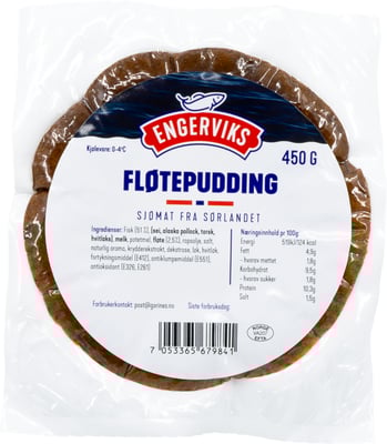 Fløtepudding 51% Engerviks fra Engerviks Vekten er 450 g. Produktet inneholder følgende allergener: Fisk, Melk. Produktet leveres av GORINES AS. Produktet ble første gang registrert 11.6.2023 og sist oppdatert 6.9.2023.
