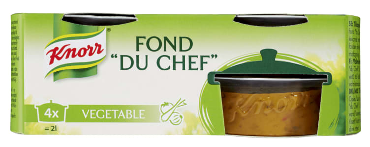 Den fyldige og delikate smaken av Knorr Fond du Chef Grønnsaker kan brukes til nesten alt. Opplev den fantastiske smaken med stekte grønnsaker, poteter, ris, i brød eller til fisk. I likhet med alle de andre variantene av Knorr Fond du Chef består grønnsaksfonden utelukkende av gode, utvalgte råvarer. Den fyldige smaken kommer frem når alle ingrediensene får småkoke langsomt, akkurat som du selv ville ha gjort det. Og som alle kokker i fine restauranter gjør det. Hver pakke inneholder 4 porsjoner. Knorr har som mål å inspirere alle til å spise bedre for seg selv og planeten – for en bærekraftig matfremtid. Vi vet at alt vi har på tallerkenen har innvirkning på helse og miljø. Den gode nyheten? Små endringer kan utgjøre en stor forskjell.