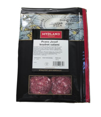 Frans Josef Skåret 100g Mydland fra Mydland er et produkt innen Pålegg & frokost, Kjøttpålegg, Saltpølser. Vekten er 0.1 kg. Produktet leveres av SPESIALGROSSISTEN AS. Produktet ble første gang registrert 11.6.2023 og sist oppdatert 6.9.2023.