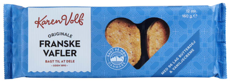 Franske Vafler 160g Karen Volf fra Karen volf er et produkt innen Bakevarer og kjeks, Kjeks, Søtkjeks. Produktet er tilgjengelig hos Joker til en pris av 32.90 kr. Vekten er 160 g. Produktet inneholder følgende allergener: Gluten. Produktet leveres av Baxt as. Produktet ble første gang registrert 9.1.2022 og sist oppdatert 6.10.2023. Prisen har holdt seg stabil på 32.90 kr.