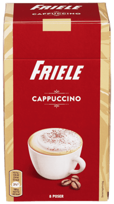 Friele Cappuccino Instant 8stk fra FRIELE Produktet er tilgjengelig hos Coop til en pris av 37.90 kr. Produktet inneholder følgende allergener: Melk. Produktet leveres av JACOBS DOUWE EGBERTS NORGE AS. Produktet ble første gang registrert 9.1.2022 og sist oppdatert 16.7.2023. Prisen har endret seg fra 29.90 kr til 37.90 kr over tid.