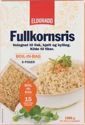Eldorado boil-in-bag fullkornsris. Med sitt høyere fiberinnhold er fullkornsris et sunnere alternativ.