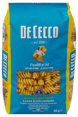 Fusilli 500g De Cecco fra De Cecco er et produkt innen Middag, Pasta, Pastaskruer. Vekten er 500 g. Produktet inneholder følgende allergener: Gluten. Produktet leveres av OLUF LORENTZEN AS. Produktet ble første gang registrert 11.6.2023 og sist oppdatert 6.9.2023.