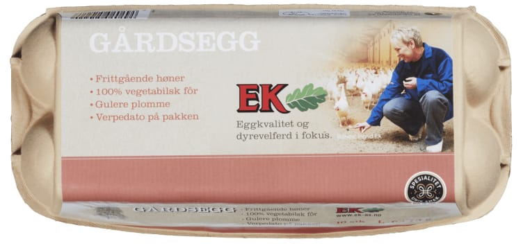 Ferske egg direkte fra gården i Østfold 100% vegetabilsk fòr fra lokal mølle, gir ekstra gul plomme. Passer perfekt til laks, grønnsaker og frokost