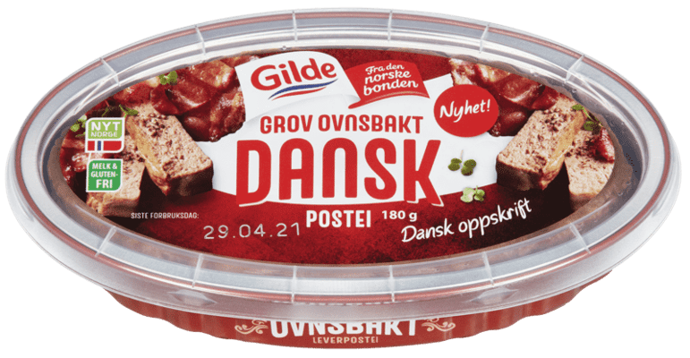 Gilde Dansk Postei 180g fra GILDE Produktet er tilgjengelig hos Coop til en pris av 28.50 kr. Produktet leveres av NORTURA SA (GILDE). Produktet ble første gang registrert 9.1.2022 og sist oppdatert 16.7.2023. Prisen har holdt seg stabil på 28.50 kr.