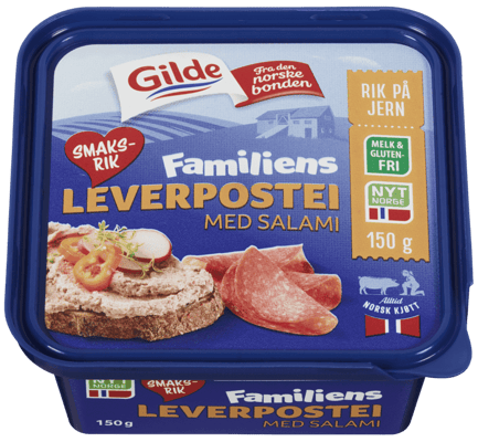 Gilde Familiens Postei Salami 150g fra GILDE Produktet er tilgjengelig hos Coop til en pris av 24.50 kr. Produktet leveres av NORTURA SA (GILDE). Produktet ble første gang registrert 15.7.2022 og sist oppdatert 16.7.2023. Prisen har holdt seg stabil på 24.50 kr.