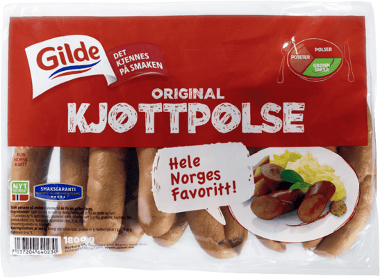 Gilde Kjøttpølse Original 1,8kg fra GILDE Produktet er tilgjengelig hos Coop til en pris av 124.90 kr. Produktet leveres av NORTURA SA (GILDE). Produktet ble første gang registrert 9.1.2022 og sist oppdatert 16.7.2023. Prisen har holdt seg stabil på 124.90 kr.