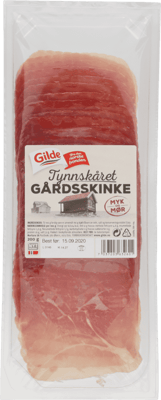 Gilde Tynnskåret Gårdskinke 200g fra GILDE Produktet er tilgjengelig hos Coop til en pris av 96.90 kr. Produktet leveres av NORTURA SA (GILDE). Produktet ble første gang registrert 9.1.2022 og sist oppdatert 16.7.2023. Prisen har endret seg fra 88.90 kr til 96.90 kr over tid.