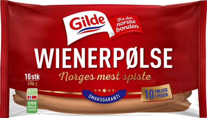 Gilde Wienerpølse 650g fra GILDE er et produkt innen Kjøtt, Pølser, Wienerpølser. Produktet er tilgjengelig hos Coop til en pris av 64.90 kr. Produktet leveres av NORTURA SA (GILDE). Produktet ble første gang registrert 9.1.2022 og sist oppdatert 16.7.2023. Prisen har endret seg fra 63.90 kr til 64.90 kr over tid.