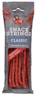 GØL Klassisk Strings Snack 90g fra GØL er et produkt innen Pålegg & frokost, Kjøttpålegg, Saltpølser. Produktet er tilgjengelig hos Coop til en pris av 47.90 kr. Produktet leveres av DANISH CROWN NORWAY AS. Produktet ble første gang registrert 15.7.2022 og sist oppdatert 16.7.2023. Prisen har holdt seg stabil på 47.90 kr.