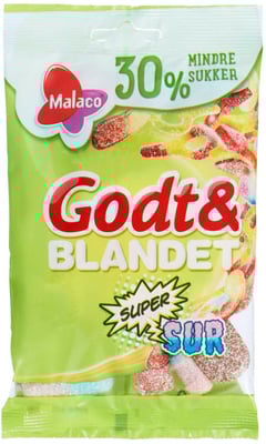 Godt&Blandet Supersur 30% Malaco fra Malaco Produktet er tilgjengelig hos Meny til en pris av 13.85 kr. Produktet leveres av Cloetta norge a/s. Produktet ble første gang registrert 9.1.2022 og sist oppdatert 16.7.2023. Prisen har endret seg fra 26.90 kr til 13.85 kr over tid.
