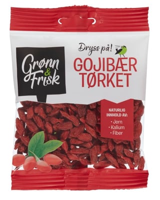 Gojibær Tørket Økologisk 40g Grønn&Frisk fra Grønn&frisk er et produkt innen Bakevarer og kjeks, Tørket frukt og nøtter, Gojibær tørket. Produktet er tilgjengelig hos Meny til en pris av 25.90 kr. Vekten er 40 g. Produktet leveres av Bama dagligvare as. Produktet ble første gang registrert 9.1.2022 og sist oppdatert 6.10.2023. Prisen har holdt seg stabil på 25.90 kr.