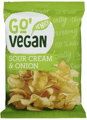 Go’Vegan er Norges mest kjente og prefererte plantebaserte merkevare og har laget smakfulle veganske alternativer siden 2017. Vår sourcream&onion chips er laget på Sørlandet med solsikkeolje og vegansk rømmekrydder og smaker minst like digg som vanlig chips. Det skal smake godt å velge vegansk!