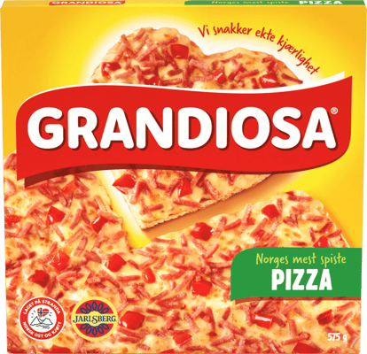 Smak av mild tomatsaus, pizzakjøtt, paprika og toppet med Jarlsberg.