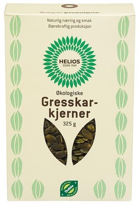 Gresskarkjerner 325 g fra Helios Produktet er tilgjengelig hos Oda til en pris av 64.80 kr. Vekten er 325 g. Produktet leveres av Midsona Norge AS. Produktet ble første gang registrert 9.1.2022 og sist oppdatert 6.10.2023. Prisen har holdt seg stabil på 64.80 kr.