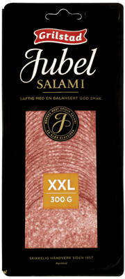Grilstad Jubelsalami 300g fra GRILSTAD Produktet er tilgjengelig hos Coop til en pris av 93.90 kr. Produktet leveres av GRILSTAD AS. Produktet ble første gang registrert 9.1.2022 og sist oppdatert 16.7.2023. Prisen har holdt seg stabil på 93.90 kr.