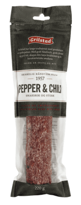 Grilstad Pepper & Chili 220g fra GRILSTAD er et produkt innen Pålegg & frokost, Spekemat, Spekepølser. Produktet er tilgjengelig hos Coop til en pris av 91.00 kr. Produktet leveres av GRILSTAD AS. Produktet ble første gang registrert 9.1.2022 og sist oppdatert 16.7.2023. Prisen har endret seg fra 85.90 kr til 91.00 kr over tid.