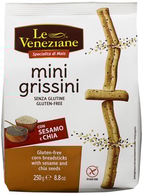 Grissini M/sesam&chia Le Veneziane fra Le Veneziane Vekten er 250 g. Produktet inneholder følgende allergener: Sesam, Soya. Produktet leveres av JONASSEN & CO AS. Produktet ble første gang registrert 11.6.2023 og sist oppdatert 6.9.2023.