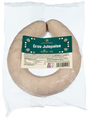 Grov Julepølse Urøkt Vekten er 400 g. Produktet inneholder følgende allergener: Melk. Produktet leveres av NORDFJORD KJØTT. Produktet ble første gang registrert 11.6.2023 og sist oppdatert 6.9.2023.
