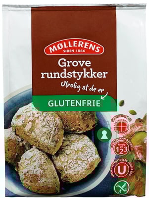 Grove Rundstykker, bakemiks Glutenfrie, 405 g fra Møllerens Produktet er tilgjengelig hos Oda til en pris av 41.60 kr. Produktet leveres av Norgesmøllene AS. Produktet ble første gang registrert 9.1.2022 og sist oppdatert 16.7.2023. Prisen har endret seg fra 41.50 kr til 41.60 kr over tid.