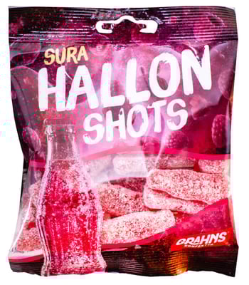 HALLON-shots er skikkelig sure geléflasker med spenstig smak og perfekt tyggemotstand! Tøffe poser med tydelig kommunikasjon som skiller seg ut i hyllen!