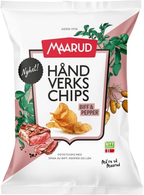 Maarud lanserer et nytt kettle konsept, HÅNDVERKCHIPS! En kvalitetsprodukt produsert med få råvarer. Håndverkchips er laget i deilig olje, med gode råvarer og kjelekokt ved lav temperatur over lengre tid. Dette gir en skikkelig sprøhet og masse chrunch i flaket. To brede smaker; Finmalt salt og Biff Pepper & onion.
