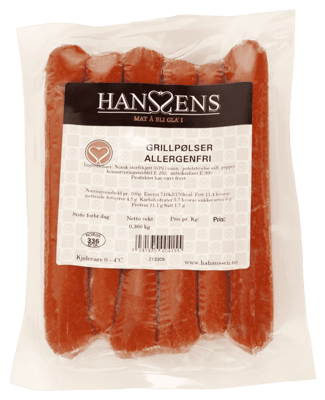 Hanssens Grillpølse Allergenfri 360g
