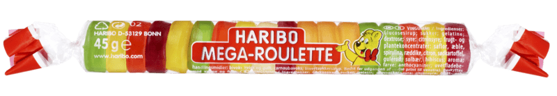 Haribo Mega Roulette Fruit 45g fra HARIBO er et produkt innen Snacks & godteri, Godteri. Produktet er tilgjengelig hos Coop til en pris av 15.50 kr. Produktet leveres av HARIBO LAKRIS AS. Produktet ble første gang registrert 9.1.2022 og sist oppdatert 16.7.2023. Prisen har holdt seg stabil på 15.50 kr.