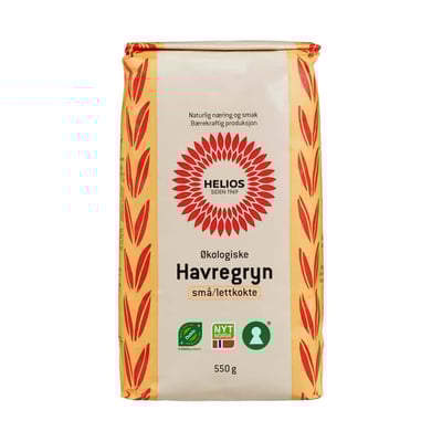 Helios Små/lettkokte Havregryn er økologiske og egner seg i en rekke retter og bakverk, og tilfører maten verdifull næring. Prøv dem naturell med melk eller yoghurt, eller i boller og pannerkaker for et litt sunnere alternativ. Havre er et av våre sunnest