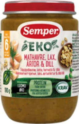 Havre&Laks m/Erter 6mnd 190g Semper fra Semper er et produkt innen Barneprodukter, Barnemat. Produktet er tilgjengelig hos Meny til en pris av 15.00 kr. Vekten er 190 g. Produktet inneholder følgende allergener: Fisk, Gluten. Produktet leveres av Bonaventura sales. Produktet ble første gang registrert 9.1.2022 og sist oppdatert 18.9.2023. Prisen har endret seg fra 30.00 kr til 15.00 kr over tid.