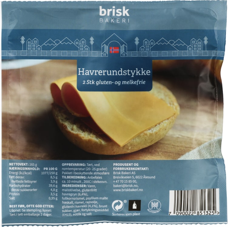 Havrerundstykker Gl.Fri&Laktosefri 160g Brisk Bakeri fra Brisk bakeri er et produkt innen Bakeri, Rundstykker og småbrød, Baguetter. Produktet koster 39.90 kr. Produktet leveres av Brisk bakeri as. Produktet ble første gang registrert 9.4.2026 og sist oppdatert 9.4.2026.
