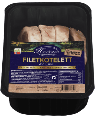 Henriettes Filetkotelett av Lam ca 400g fra HENRIETTES Produktet er tilgjengelig hos Coop til en pris av 107.16 kr. Produktet leveres av FATLAND SALG AS. Produktet ble første gang registrert 15.9.2022 og sist oppdatert 16.7.2023. Prisen har holdt seg stabil på 107.16 kr.