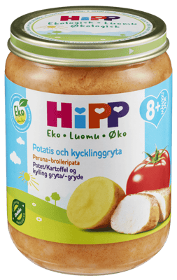 Hipp Potet og Kyllinggryte 8md fra HIPP Produktet er tilgjengelig hos Coop til en pris av 23.90 kr. Produktet leveres av ARVID NORDQUIST NORGE AS. Produktet ble første gang registrert 9.1.2022 og sist oppdatert 16.7.2023. Prisen har holdt seg stabil på 23.90 kr.