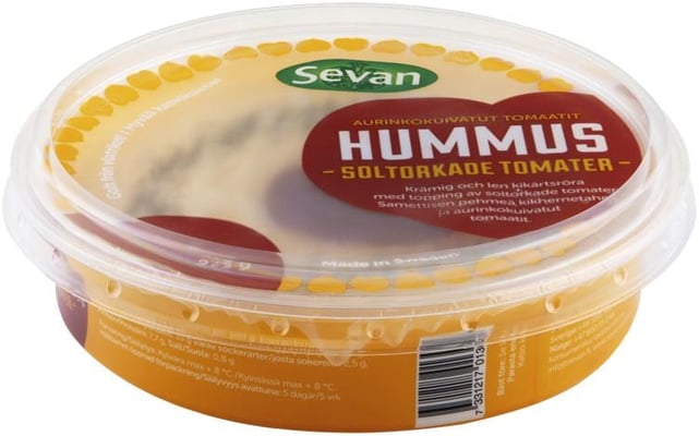 Hummus Med Soltørkede Tomater, 275 g fra Sevan er et produkt innen Middagstilbehør, Sauser, Hummus. Produktet er tilgjengelig hos Oda til en pris av 49.90 kr. Vekten er 275 g. Produktet leveres av Sevan AS. Produktet ble første gang registrert 9.1.2022 og sist oppdatert 7.10.2023. Prisen har holdt seg stabil på 49.90 kr.