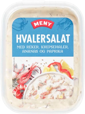Hvalersalat 200g Meny fra Meny er et produkt innen Pålegg & frokost, Påleggsalat. Produktet er tilgjengelig hos Meny til en pris av 41.70 kr. Vekten er 200 g. Produktet inneholder følgende allergener: Egg, Sennep, Skalldyr. Produktet leveres av Matbørsen as. Produktet ble første gang registrert 9.1.2022 og sist oppdatert 3.10.2023. Prisen har holdt seg stabil på 41.70 kr.
