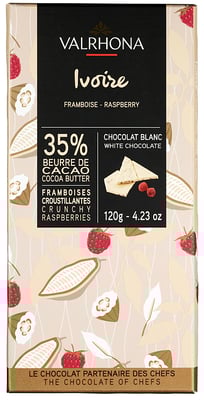 Hvit Sjokolade med Bringebær Biter 120g Valrhona