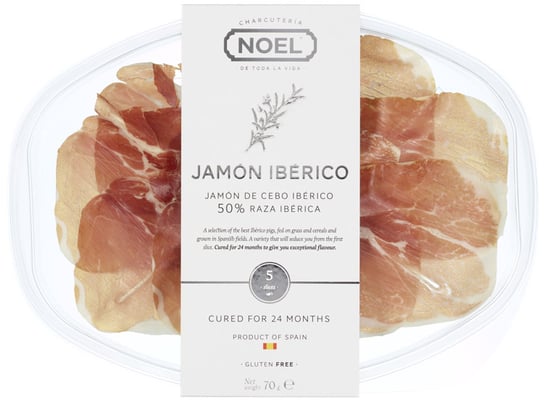 Iberico 24mnd Skivet 70g Noel fra Noel er et produkt innen Pålegg & frokost, Spekemat, Spekeskinker. Vekten er 70 g. Produktet leveres av OLUF LORENTZEN AS. Produktet ble første gang registrert 11.6.2023 og sist oppdatert 6.9.2023.