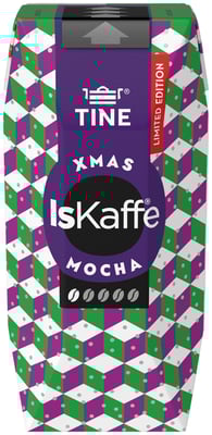 TINE®IsKaffe Xmas Mocha er laget på kaffe fra Brasil, norsk melk og har en smak av melkesjokolade og gylden karamell. Den inneholder koffein tilsvarende en kopp kaffe. Nytes best iskald, men kan også varmes (uten emballasje).