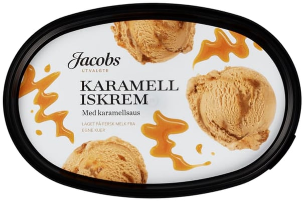 Jacobs Utvalgte Iskrem med karamellsaus er fra Iskremgården på vakre Jæren. Familien Høiland lager fløyelsmyk gourmet-is med lite luft og mye smak. Melken får de fra naboens kyr, som gresser i det åpne landskapet og den friske havbrisen fra Nordsjøen. God