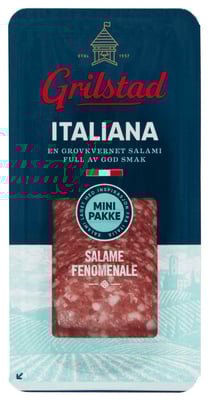 Italiana 35g Grilstad fra Grilstad er et produkt innen Pålegg & frokost, Kjøttpålegg, Saltpølser. Produktet er tilgjengelig hos SPAR til en pris av 19.90 kr. Vekten er 35 g. Produktet leveres av Grilstad as. Produktet ble første gang registrert 9.1.2022 og sist oppdatert 6.9.2023. Prisen har endret seg fra 10.00 kr til 19.90 kr over tid.