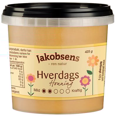 Jakobsens Hverdagshonning 425g Vekten er 425 g. Produktet leveres av DANICA FOODS AS. Produktet ble første gang registrert 11.6.2023 og sist oppdatert 6.9.2023.