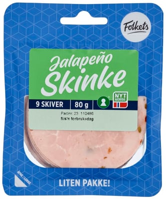 Jalapenoskinke 80g Folkets fra Folkets er et produkt innen Pålegg & frokost, Kjøttpålegg, Påleggskinker. Produktet er tilgjengelig hos Joker til en pris av 29.90 kr. Vekten er 80 g. Produktet leveres av Unil. Produktet ble første gang registrert 9.1.2022 og sist oppdatert 6.10.2023. Prisen har holdt seg stabil på 29.90 kr.