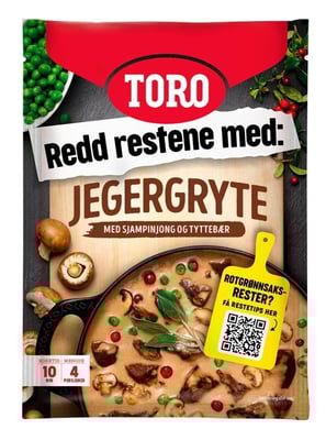 TORO Jegergryte med sjampinjong og tyttebær er en fyldig kremet gryte som kan serveres med alle typer kjøtt, men smaker spesielt godt med viltkjøtt. Sett din egen vri på gryten ved å tilsette litt brunost og rørte tyttebær, eller litt kanel.