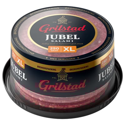 Grilstad Jubelsalami er Norges mest spiste salami. Saftig, god og rund smak. Dette er salamien som har fulgt generasjoner på frokostbordet og i matpakka.