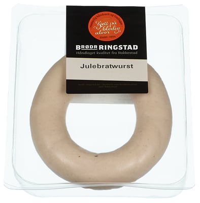 Julebratwurst 400g Brødr Ringstad fra Brødr Ringstad er et produkt innen Kjøtt, Pølser, Spesialpølser. Vekten er 400 g. Produktet inneholder følgende allergener: Melk. Produktet leveres av BRØDRENE RINGSTAD AS. Produktet ble første gang registrert 11.6.2023 og sist oppdatert 6.9.2023.