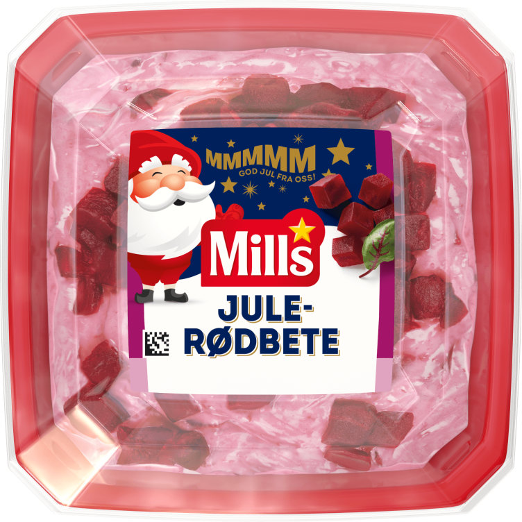 Mills Julerødbetsalat lages med rødbeter i staver og inneholder enda mer rødbeter enn den vanlige varianten. Perfekt til mange av julens klassikere som sylte, leverpostei eller annet kjøttpålegg. Mills salater produseres i Drammen.