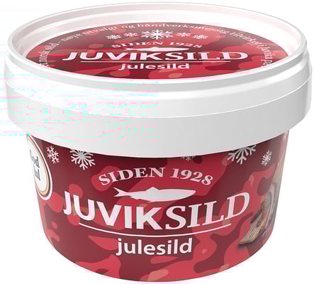 Julesild 300g Juvikprodukt As fra Juvik Sild Vekten er 300 g. Produktet inneholder følgende allergener: Fisk. Produktet leveres av SPESIALGROSSISTEN AS. Produktet ble første gang registrert 11.6.2023 og sist oppdatert 6.9.2023.