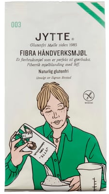 "Fibra Håndverksmjøl er en melblanding fra Toten som er naturlig fri for gluten. Melblandingen er rik på kostfiber og er en kilde til protein. Melblandingen inneholder ikke glutenrester eller hvetestivelse, og er laget spesielt for hveteallergikere og cøliakere, men kan selvsagt også brukes av alle andre. Jyttemjøl Fibra erstatter vanlig mel i matlagingen og egner seg spesielt godt til baking av brød og annen gjærbakst på grunn av sine gode bakeegenskaper som gir en smidig og luftig bakst. "